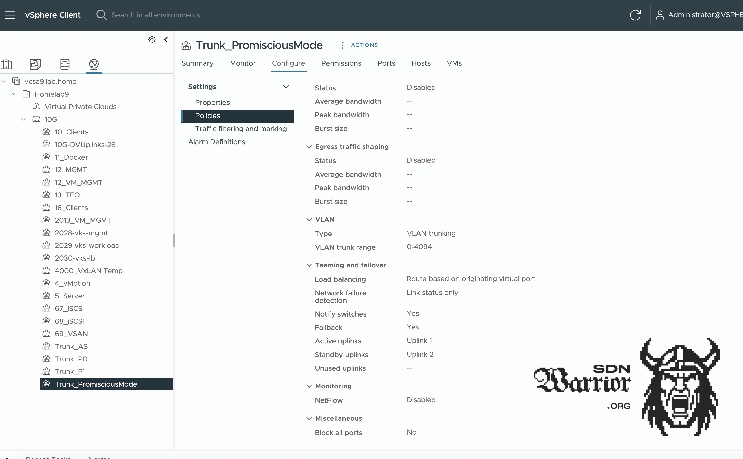 If you want to know more about this topic, you can read my article on Mac Learning. Here, I address the problem and also show the differences in performance. For VCF 9 installation, promiscuous mode is required, otherwise the deployment will fail when the VCF installer attempts to migrate the ESX servers to the distributed switch.